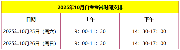 2025年10月自考将于10月25日至26日举行。请各位考生考前认真检查好需要携带的物品,预祝各位考生出行安全,考试顺利!!