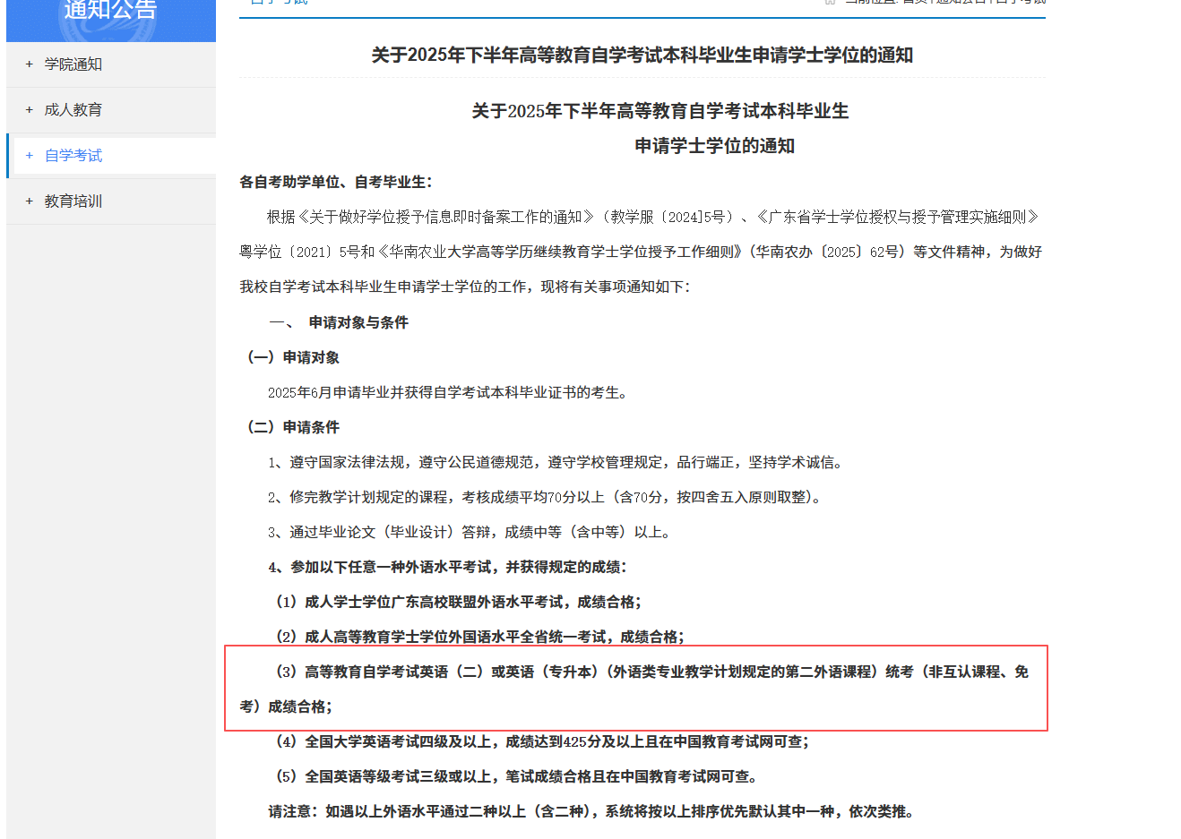 华南农业大学申请学士学位条件有所调整,调整如下: