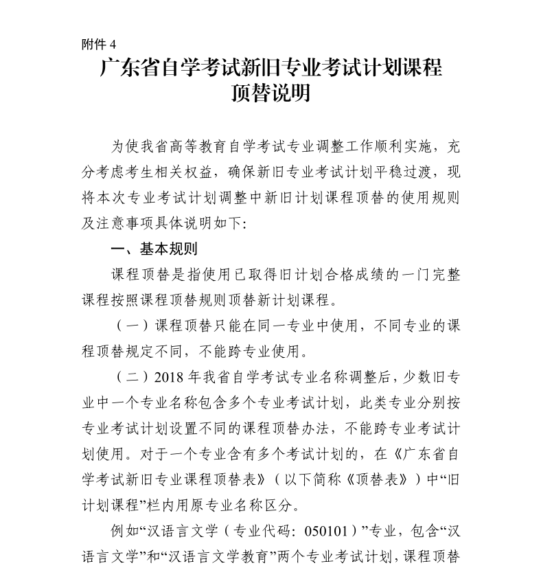 更多顶替规则可查看2026年广东省自考专业计划调整表里面的附件4