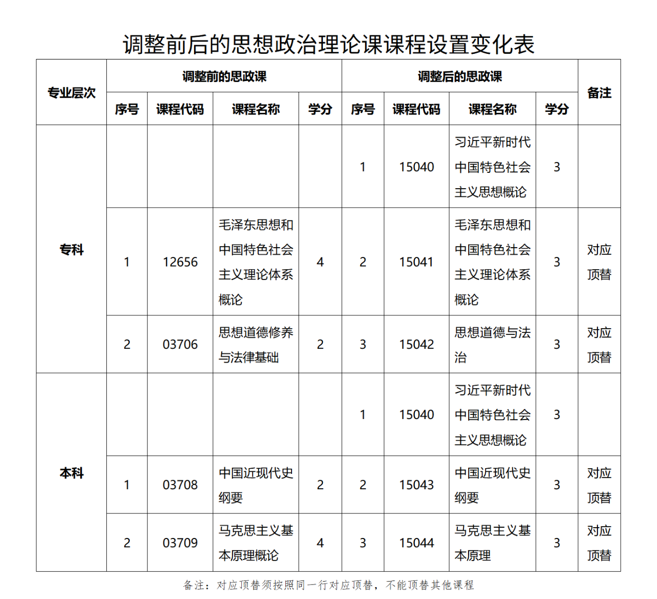 思政课代码及其学分变化,思政课、英语选考变必考,新增线性代数科目等等。