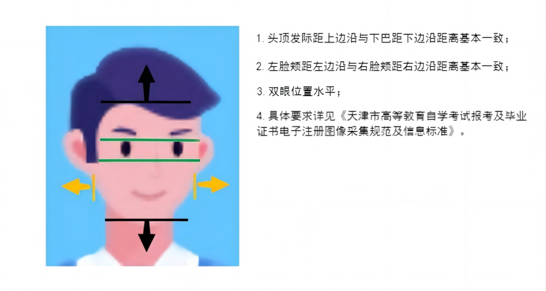 (3)身份认证上传的证件照作为考生存档照片,将用于准考证打印及其他各项业务办理,须符合《天津市高等教育自学考试报考及毕业证书电子注册图像采集规范及信息标准》(附件1),不符合要求的照片将不能通过认证。