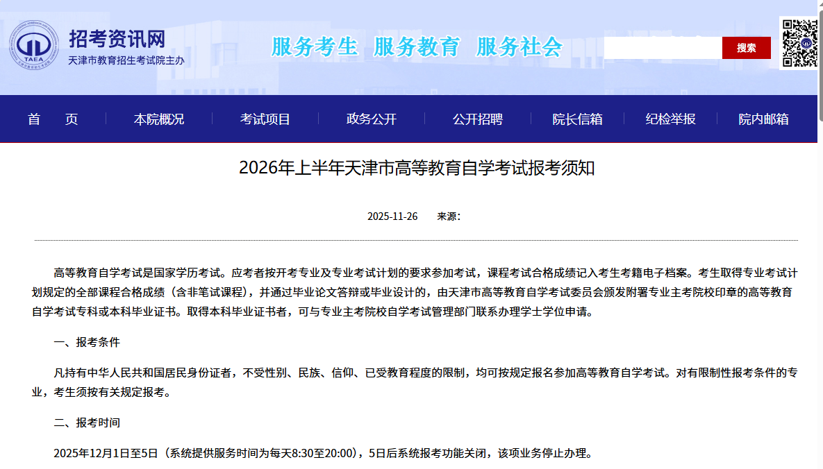 报考非笔试课程和毕业环节的考生,报考后须在2025年12月15日至16日电话联系主考院校进行报到。报到联系方式详见《2026年上半年天津市高等教育自学考试非笔试课程和毕业环节主考院校联系报到一览表》(附件2),请考生不要错过报到时间,以免延误考试。