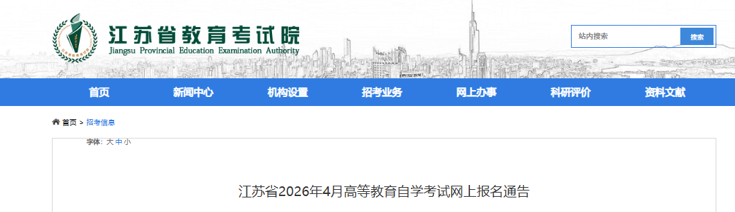 江苏省2026年4月高等教育自学考试将于4月11日至12日举行。为保障网上报名工作平稳有序进行,现将有关事项通告如下: