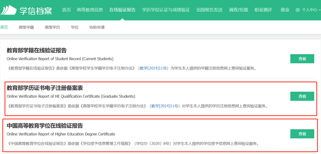 点击查看【教育部学历证书电子注册备案表】,可下载学历验证报告;