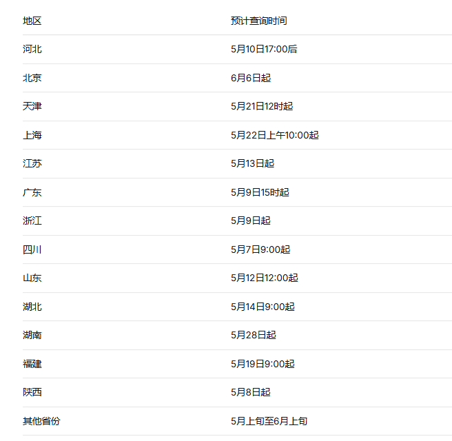 下面是参考往年情况整理的成绩公布时间,大家可以提前心里有数(具体以各省教育考试院最新通知为准):