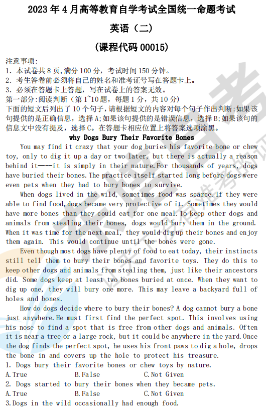 1、阅读判断题是给出一篇文章,在文章后列有10个短句,需要你根据文章内容判断正误还是文中并未提及。