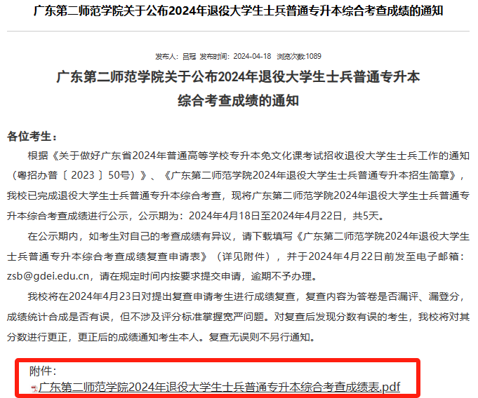 关于东莞理工学院2024年退役大学生士兵普通专升本招生综合考查成绩查询及成绩复查工作的通知