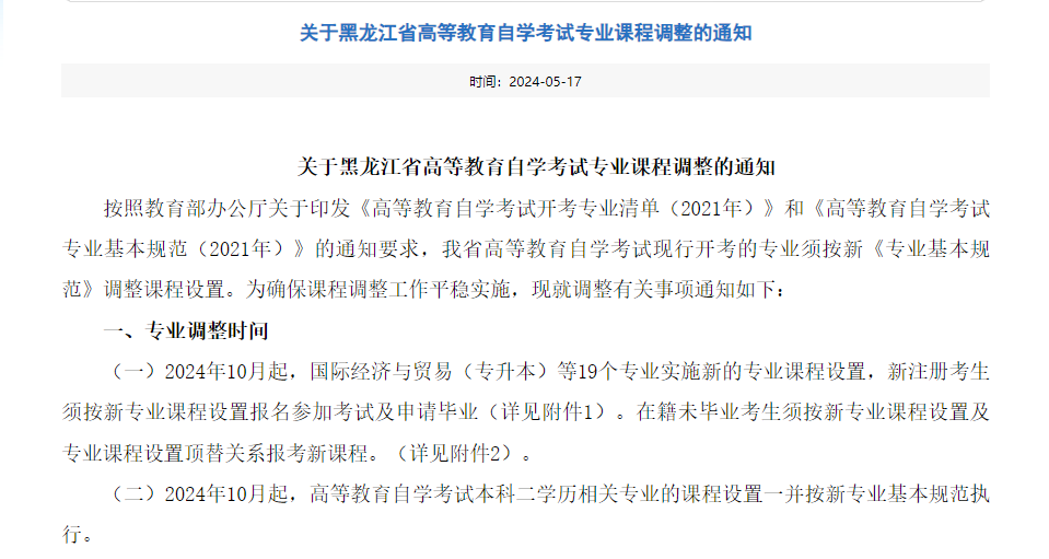 01 关于黑龙江省高等教育自学考试专业课程调整的通知