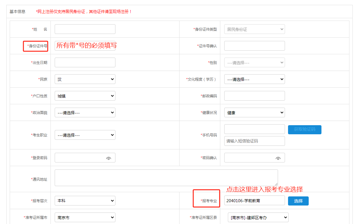 4.进入信息填写页面,按照页面的各项要求进行填写,带*的标志均为必填项