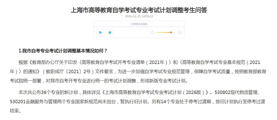 ★共公布调整36个专业的新计划,具体详见《上海市高等教育自学考试专业考试计划(2026版)》
