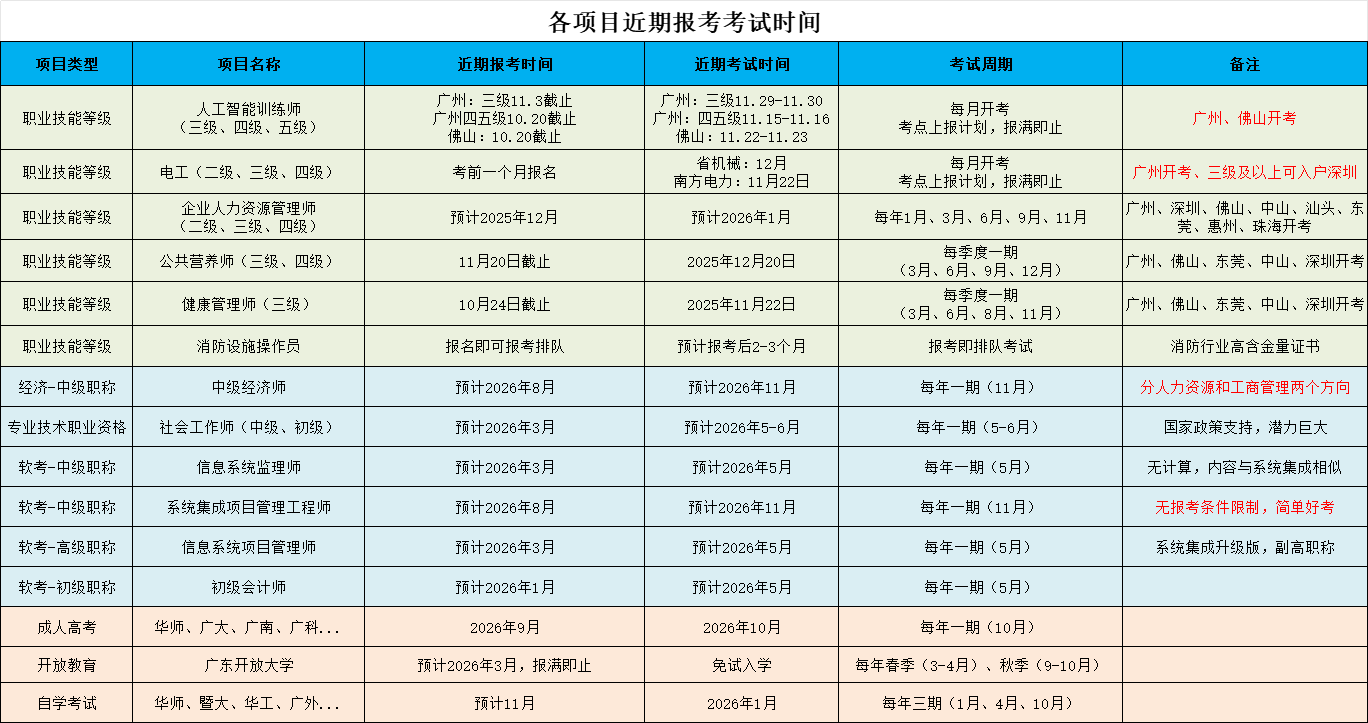 2026年上半年计划开展考试项目:中级:信息系统监理师 高级:信息系统项目管理师