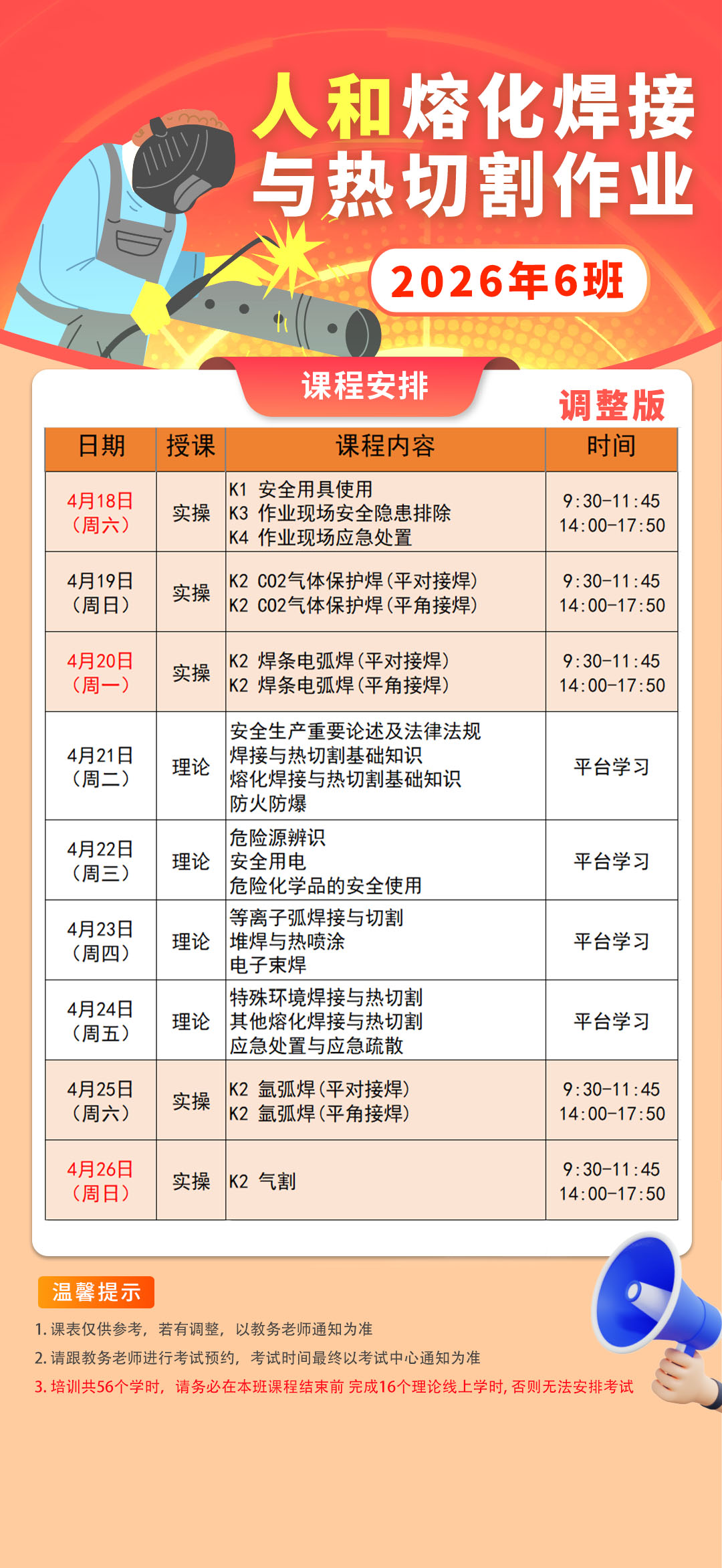 焊工6班-人和-26.3.24调整版(4月课表:最晚截止招生:4月16日中午12点前)