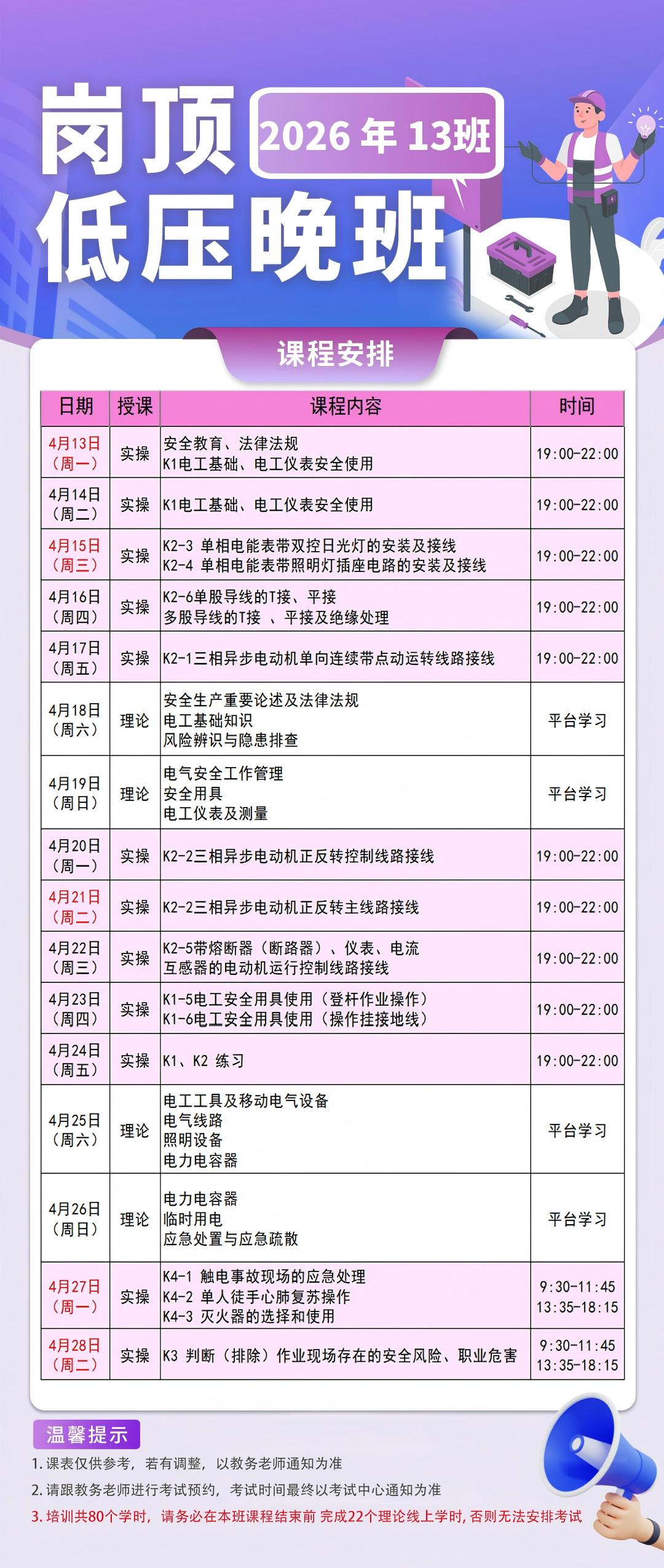 低压13班-岗顶晚班(4月课表:最晚截止招生:4月11日中午12点前)