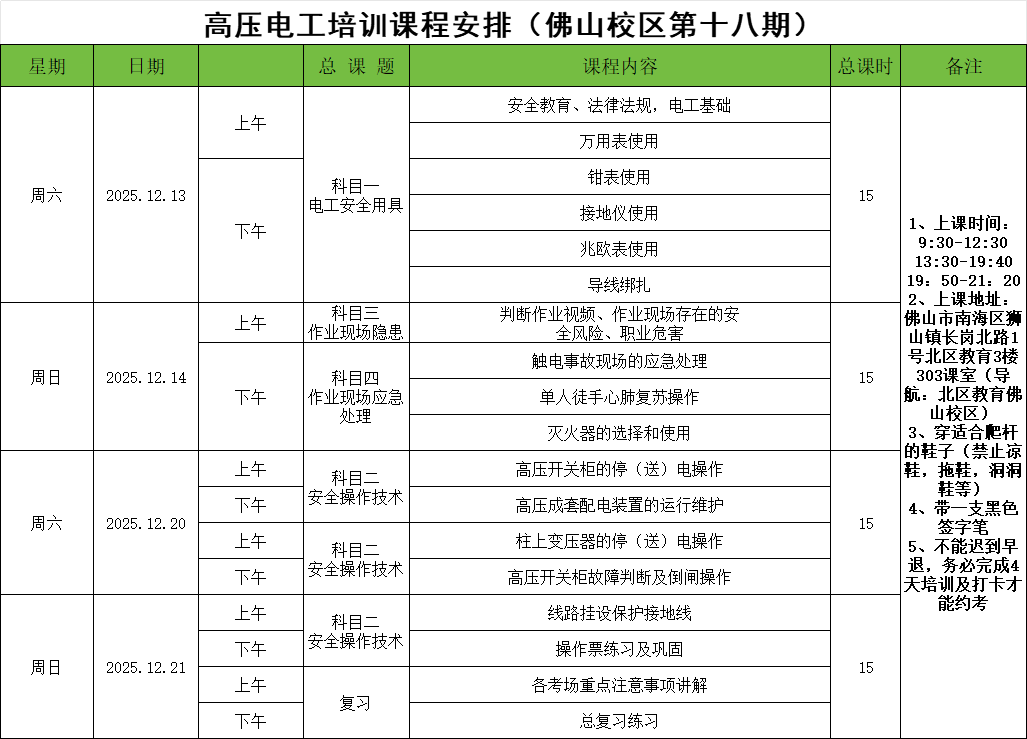 25年低压72期:12月15日开班(南海狮山)