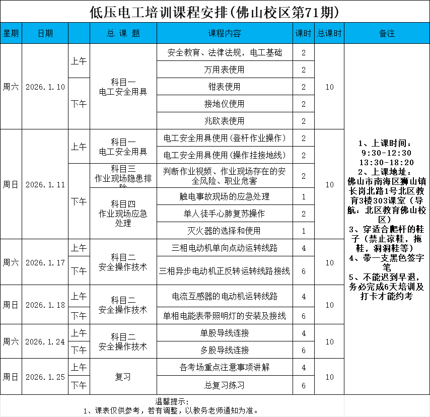 25年低压71期:1月10日开班(南海狮山)