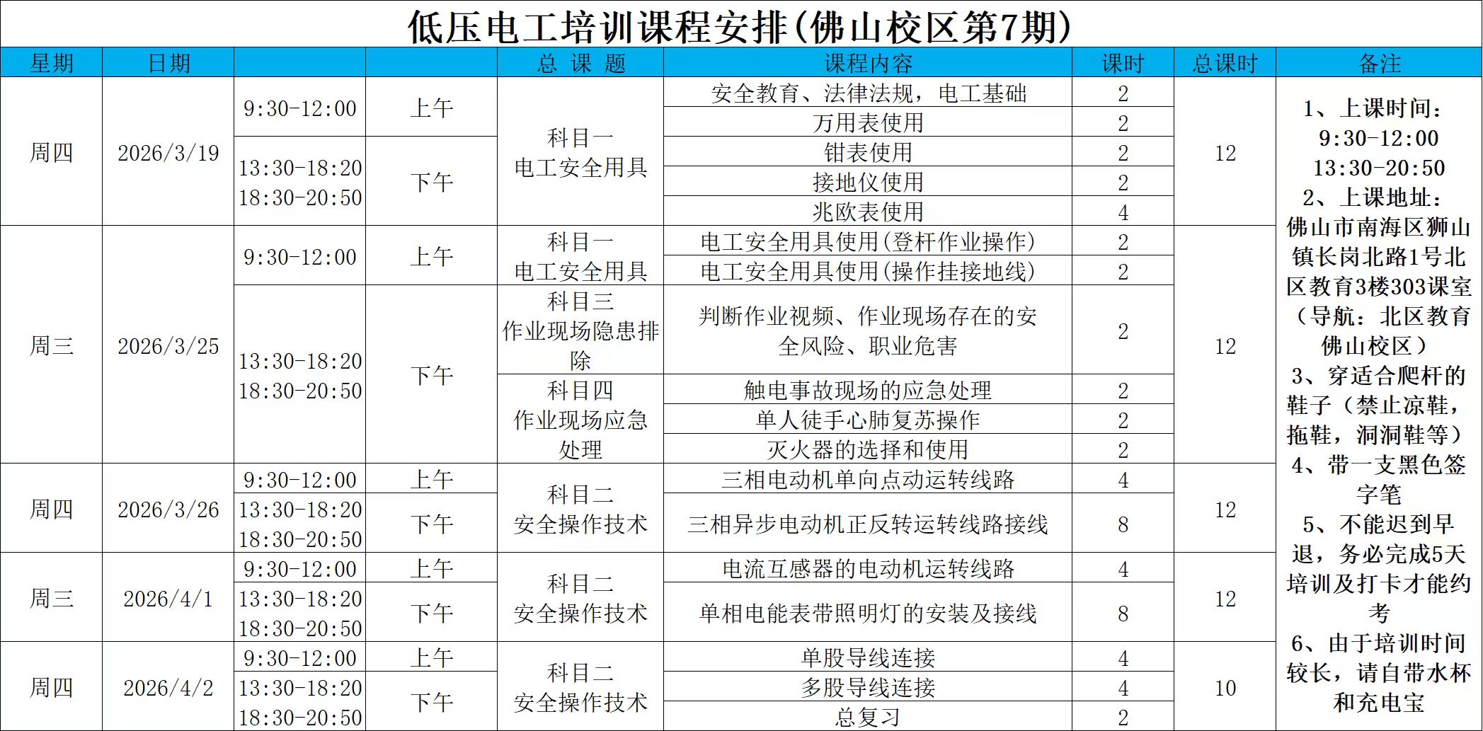 26年低压7期:3月19号开课。(南海狮山)