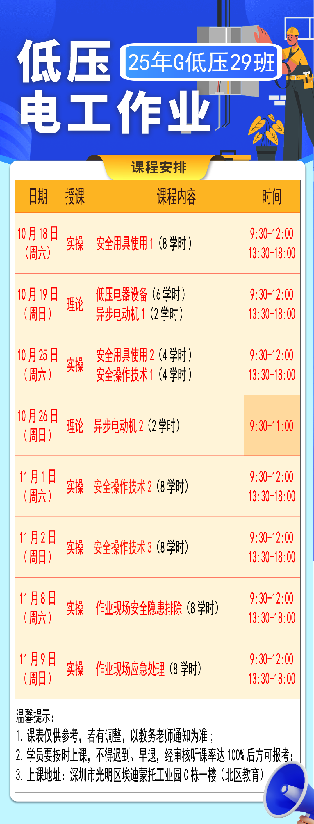 25年G低压29班 (10月18日开班)10月15日截止,剩35名额;