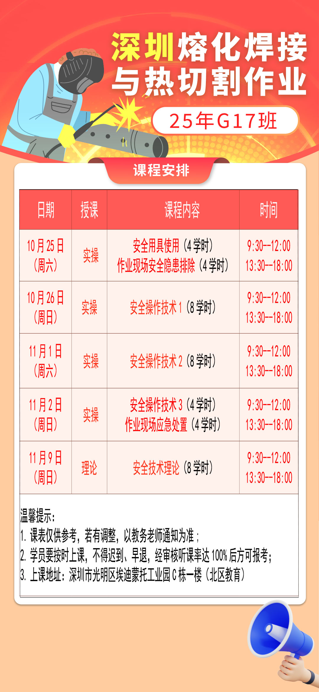 25年G焊工17班 (10月25日开班) 10月22日截止,剩30名额;