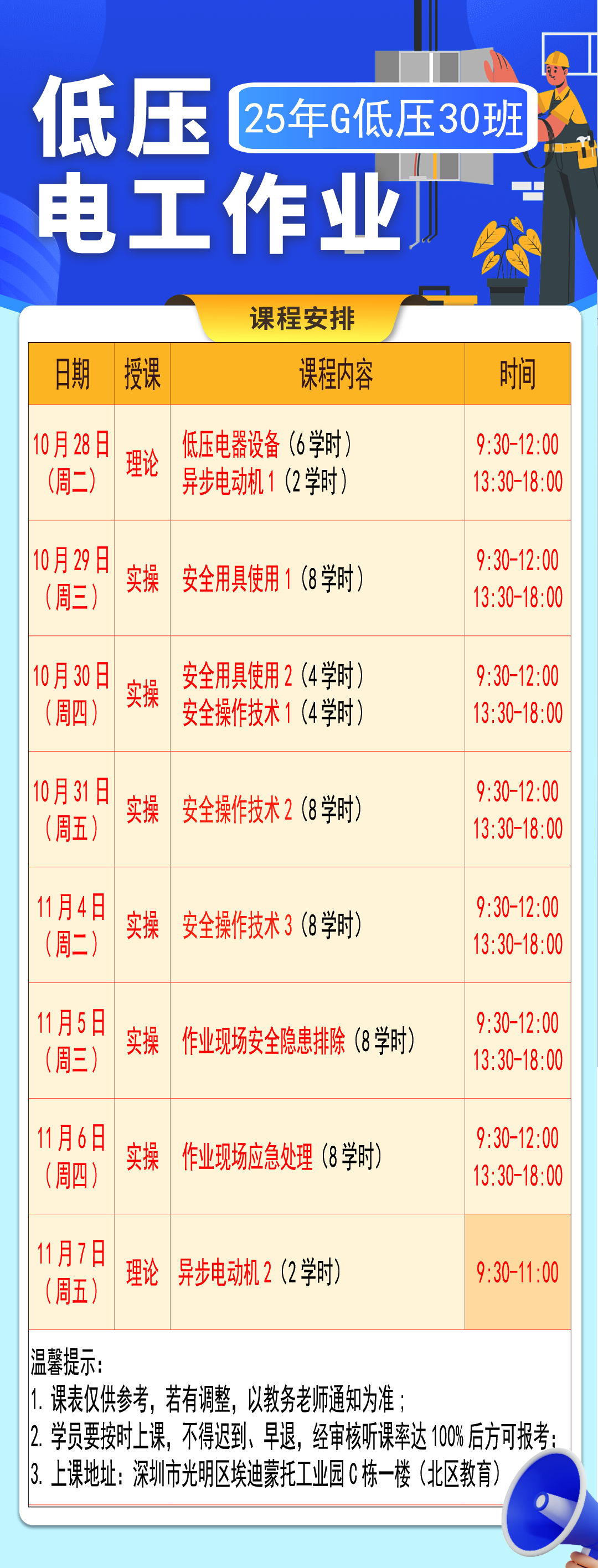 25年G低压30班 (10月28日开班)10月25日截止,剩35名额;