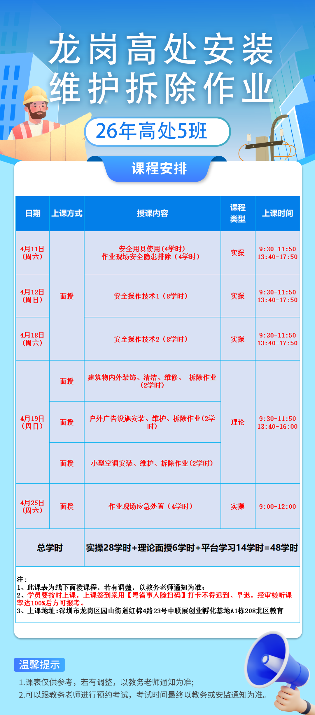 26年高处6班 (4月15日开班)4月12日截止,剩45名额;
