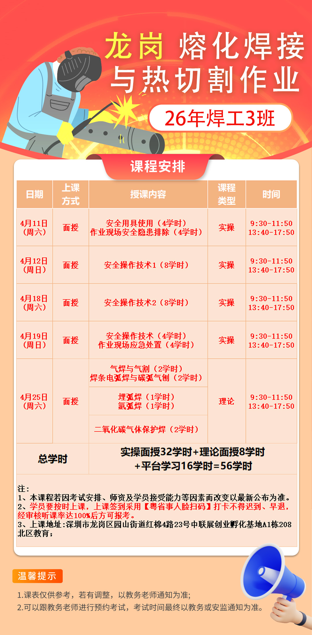 26年焊工3班 (4月11日开班)4月8日截止,剩35名额;