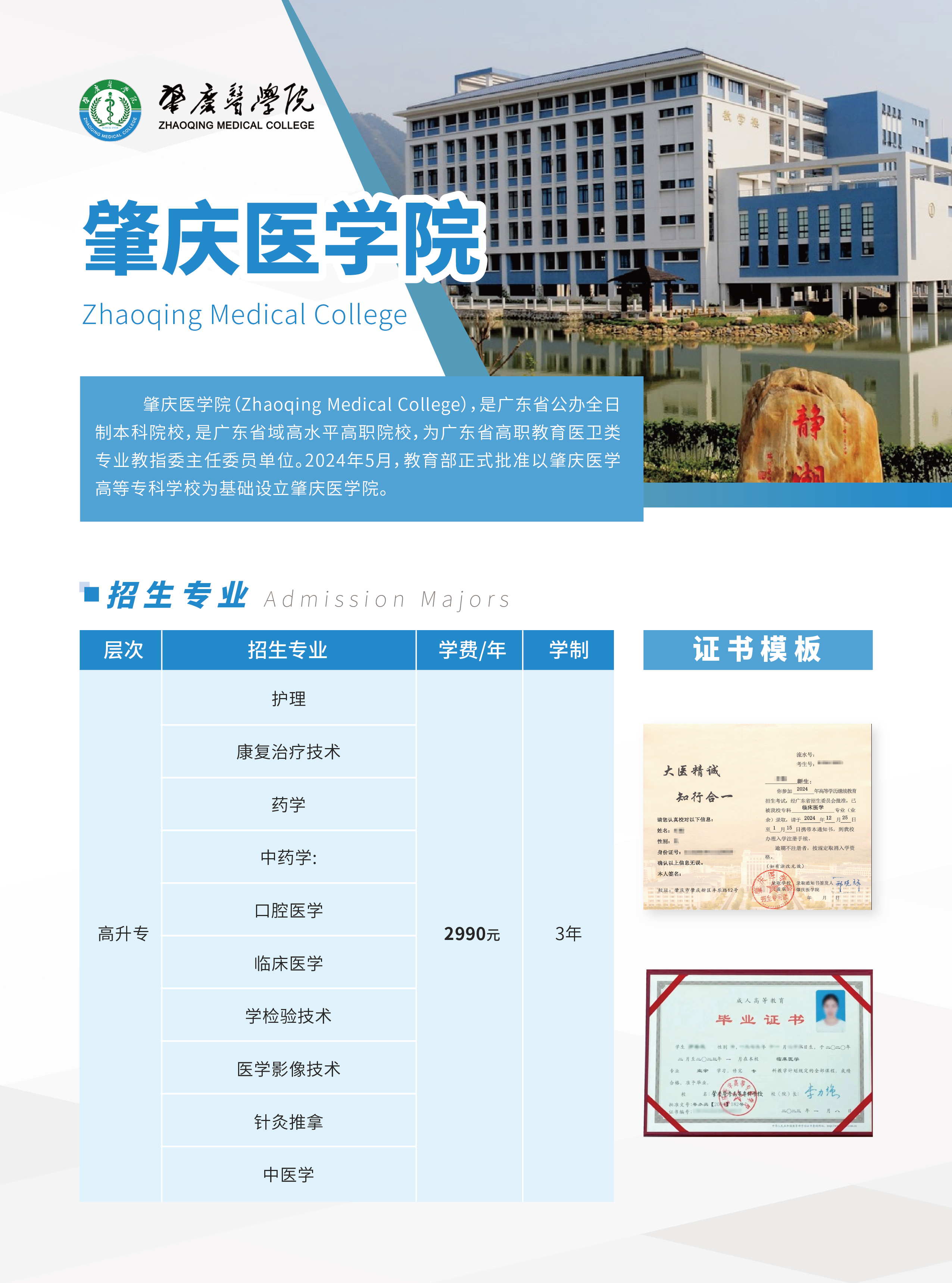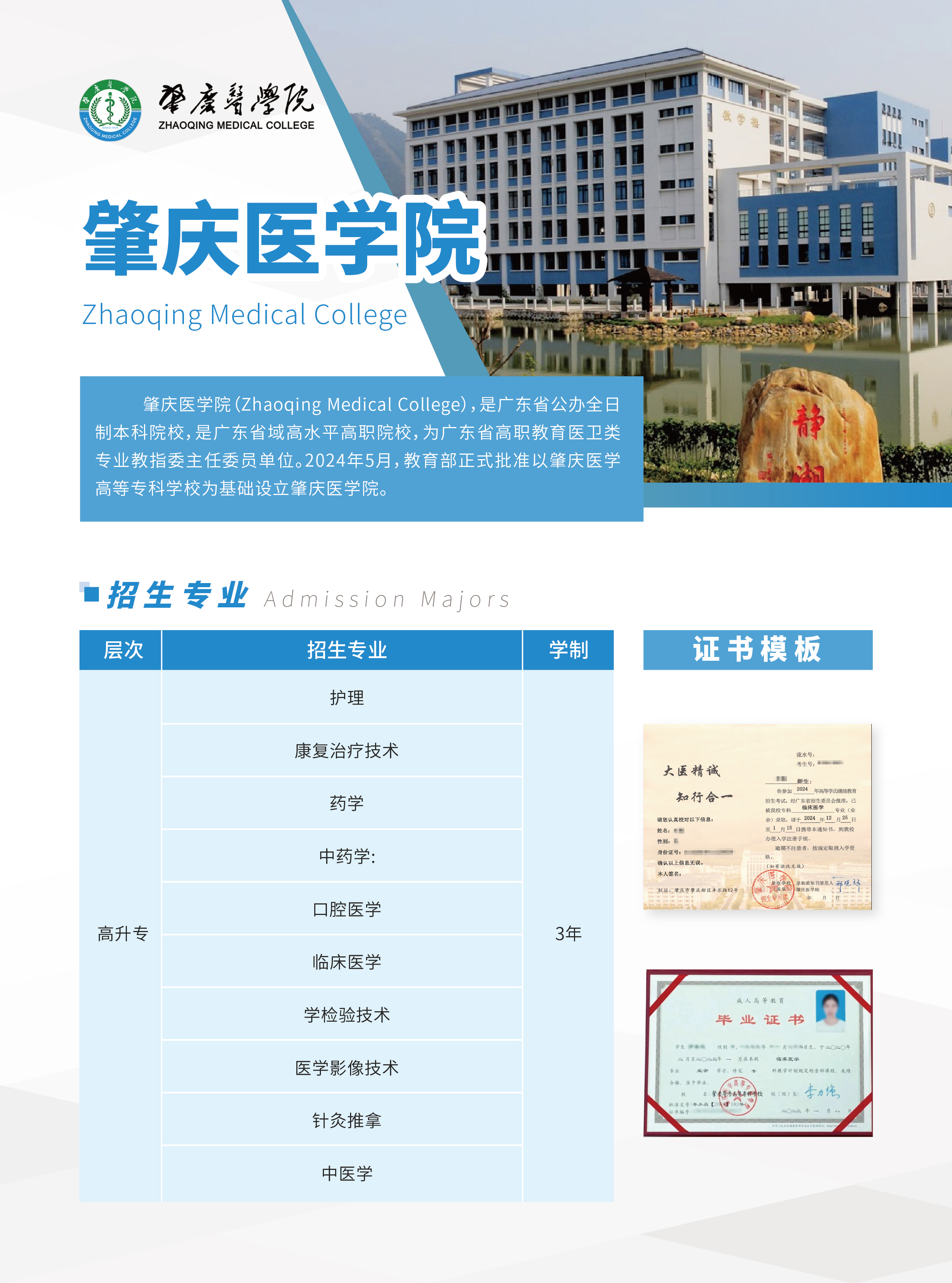 肇庆医学院(Zhaoqing Medical College),是广东省公办全日制本科院校 [2],是广东省域高水平高职院校,为广东省高职教育医卫类专业教指委主任委员单位。 [3]