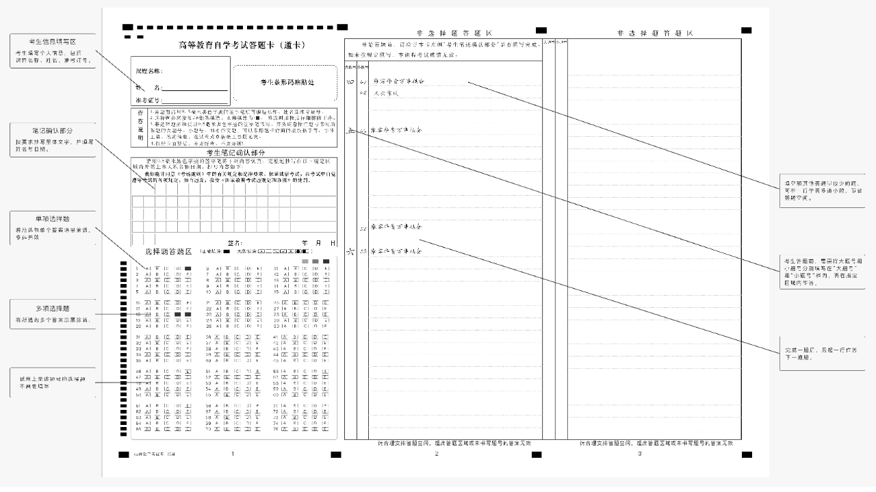 了解了自考判卷背后的秘密,下面我们一起来看看答题卡的组成: