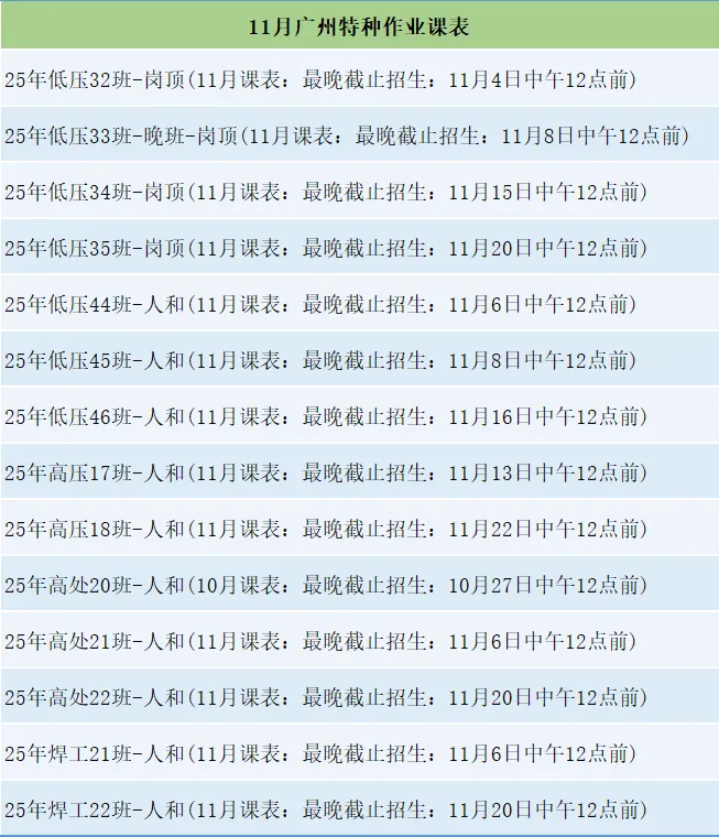 最新通知!现发布11月广州/佛山/深圳特种作业培训的排班计划,报名即可安排培训,请按需报考,联系微信:bqjy7883,欢迎咨询!