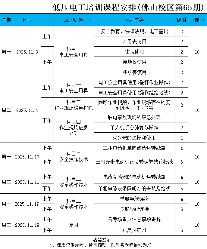 25年低压65期:11月3日开班