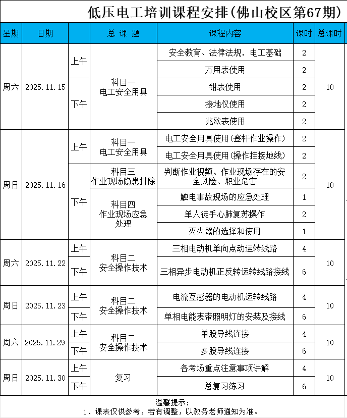 25年低压67期:11月15日开班
