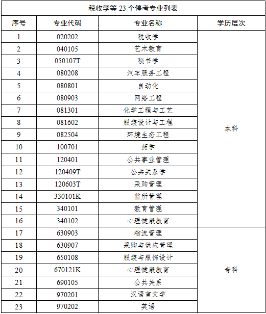 另外温馨提醒:根据《关于停考我省高等教育自学考试税收学等23个专业的通知》(粤考委〔2022〕2号)的相关规定,广东省高等教育自学考试税收学等23个专业的毕业手续办理至2025年12月止。现将税收学等23个停考专业的毕业办理安排温馨提示如下(详见附件)。