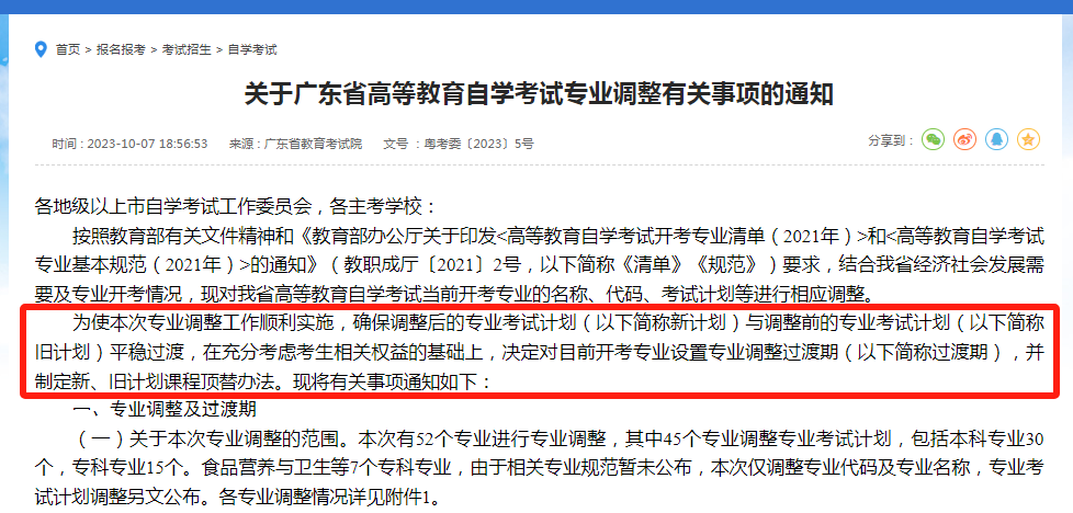 ✅广东省自学考试部分专业2026年1月1日起使用新专业代码、新专业名称,开考新计划课程,按照新计划要求办理毕业。