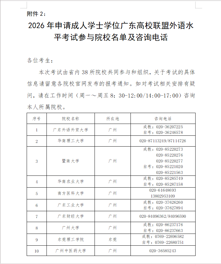 根据《关于做好2026年申请成人学士学位广东高校联盟外语水平考试报名工作的通知》要求,现将2026年申请成人学士学位广东高校联盟外语水平考试(以下简称“外语水平考试”)报名有关事宜通知如下: