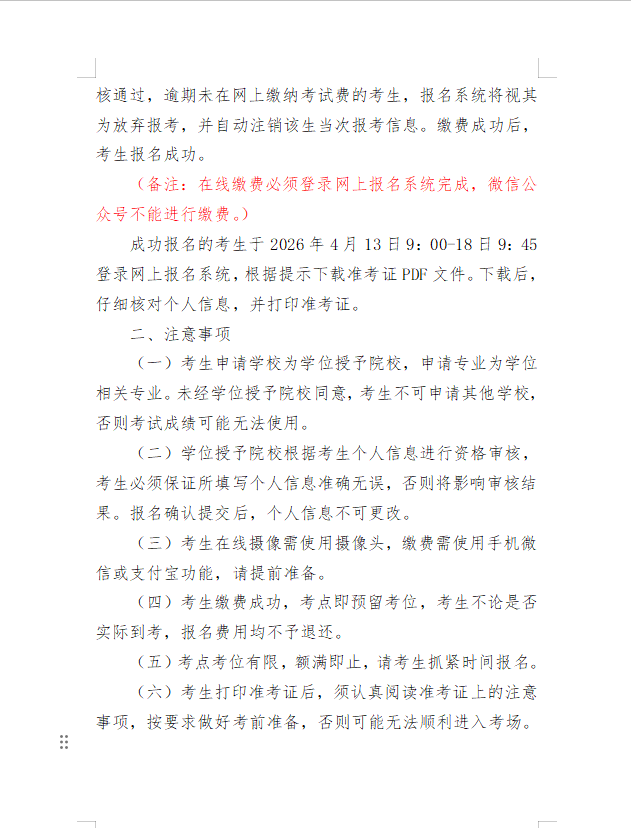 打印准考证时间:2026年4月13日9:00-4月18日9:45;