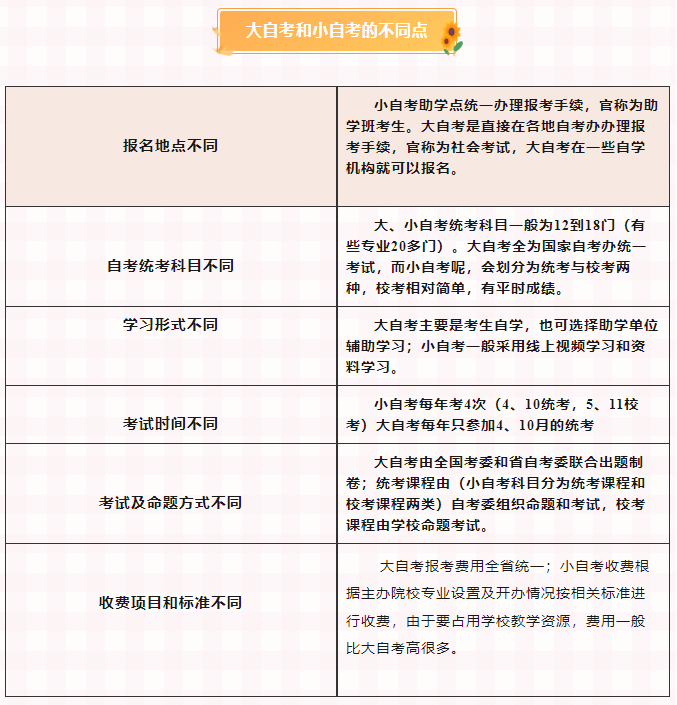 四、大自考、小自考的相同点和不同点