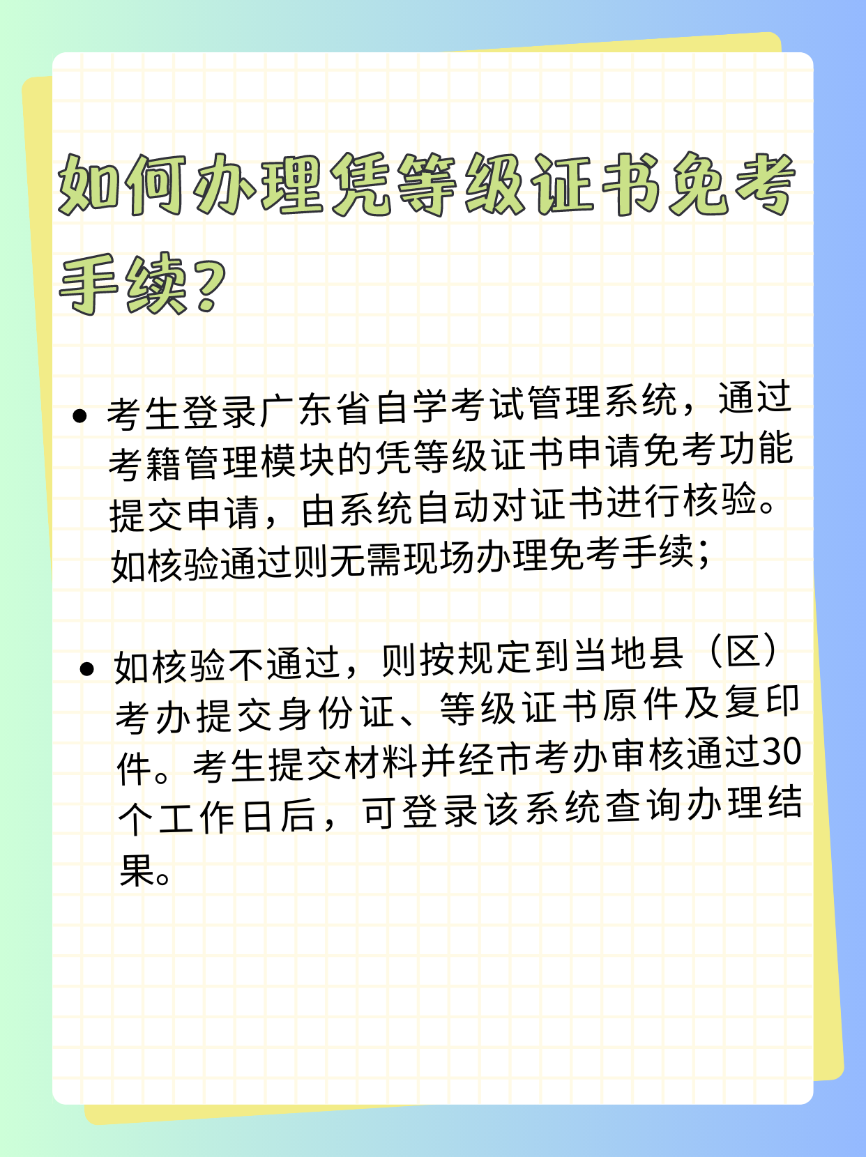 ✔已办理过免考手续的课程,因应考者改报新专业,原已同意免考的课程,在新专业计划中没有设置该课程的,则不予免考;