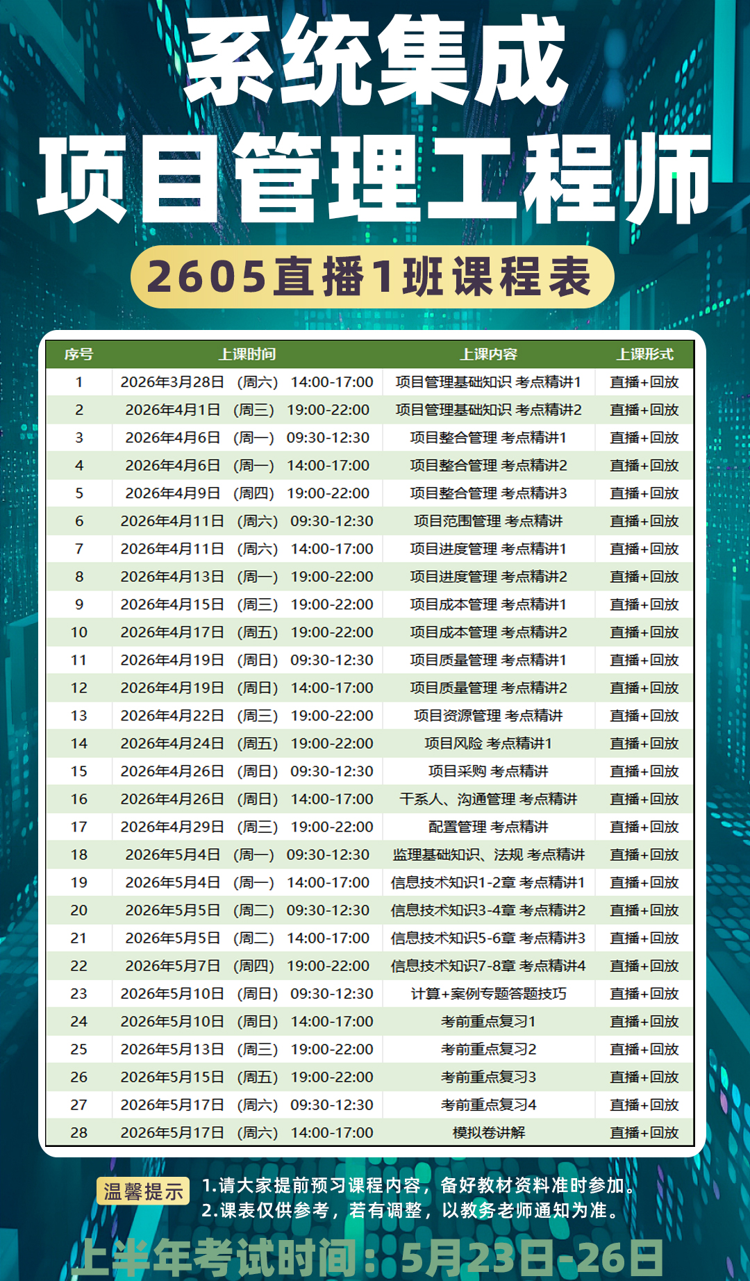 2026年高级信息系统项目管理师直播班:3月1日开班