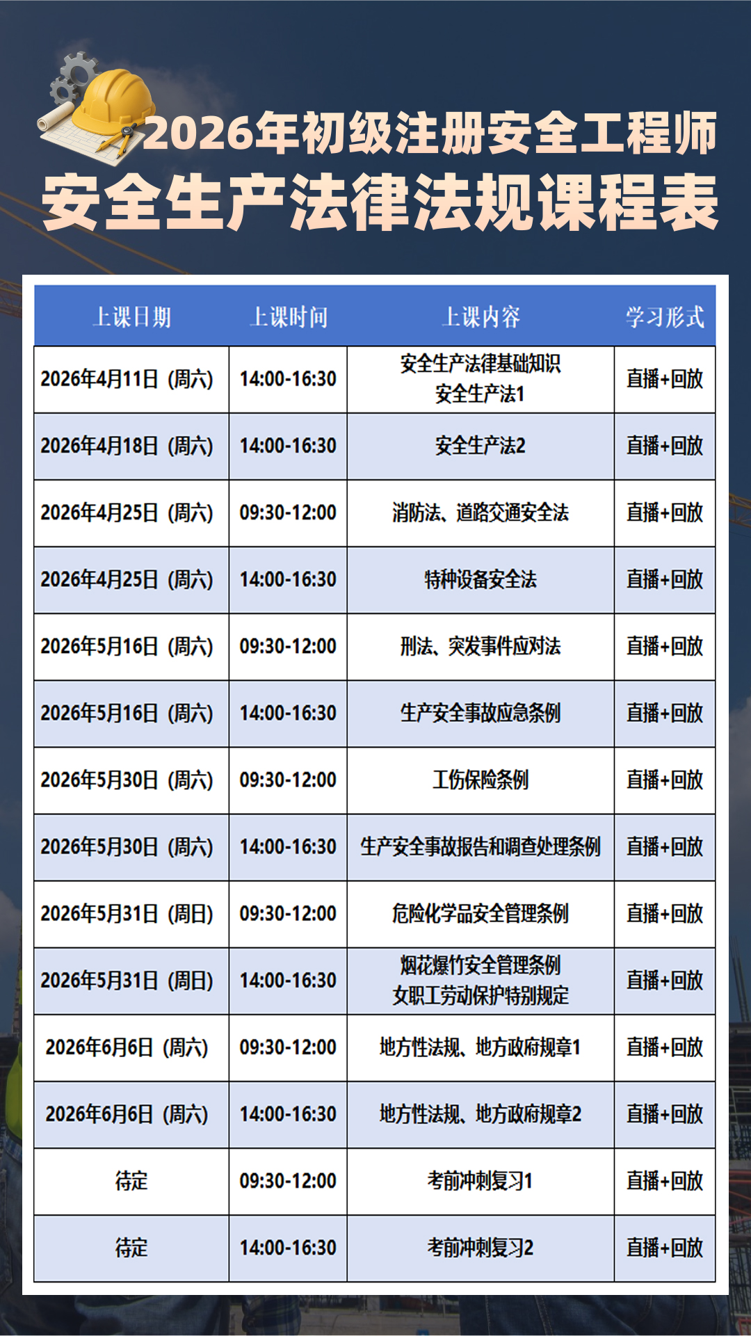 2026年初级注册安全工程师直播班:4月11日开班