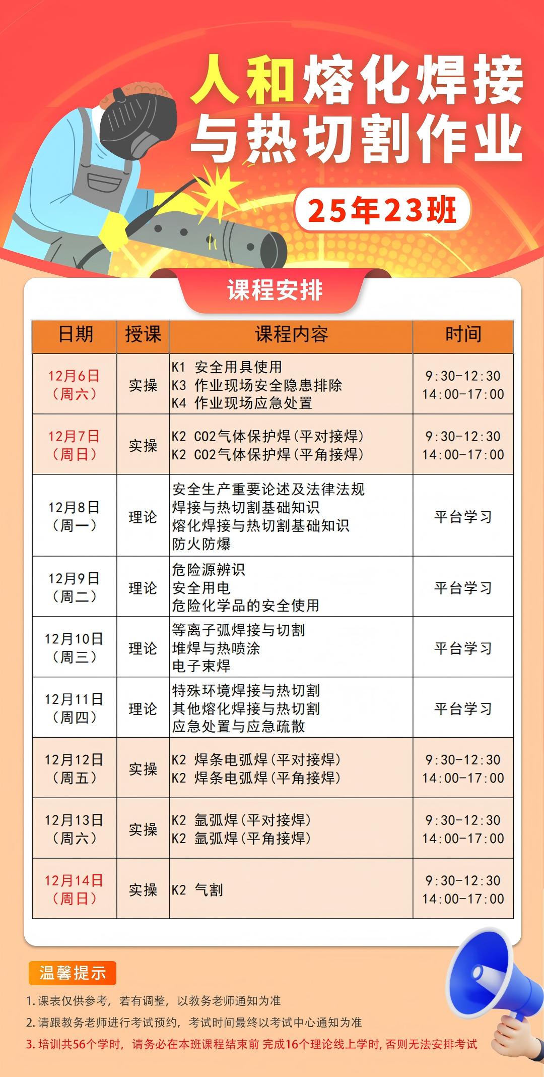 25年焊工23班-人和(12月课表:最晚截止招生:12月4日中午12点前)