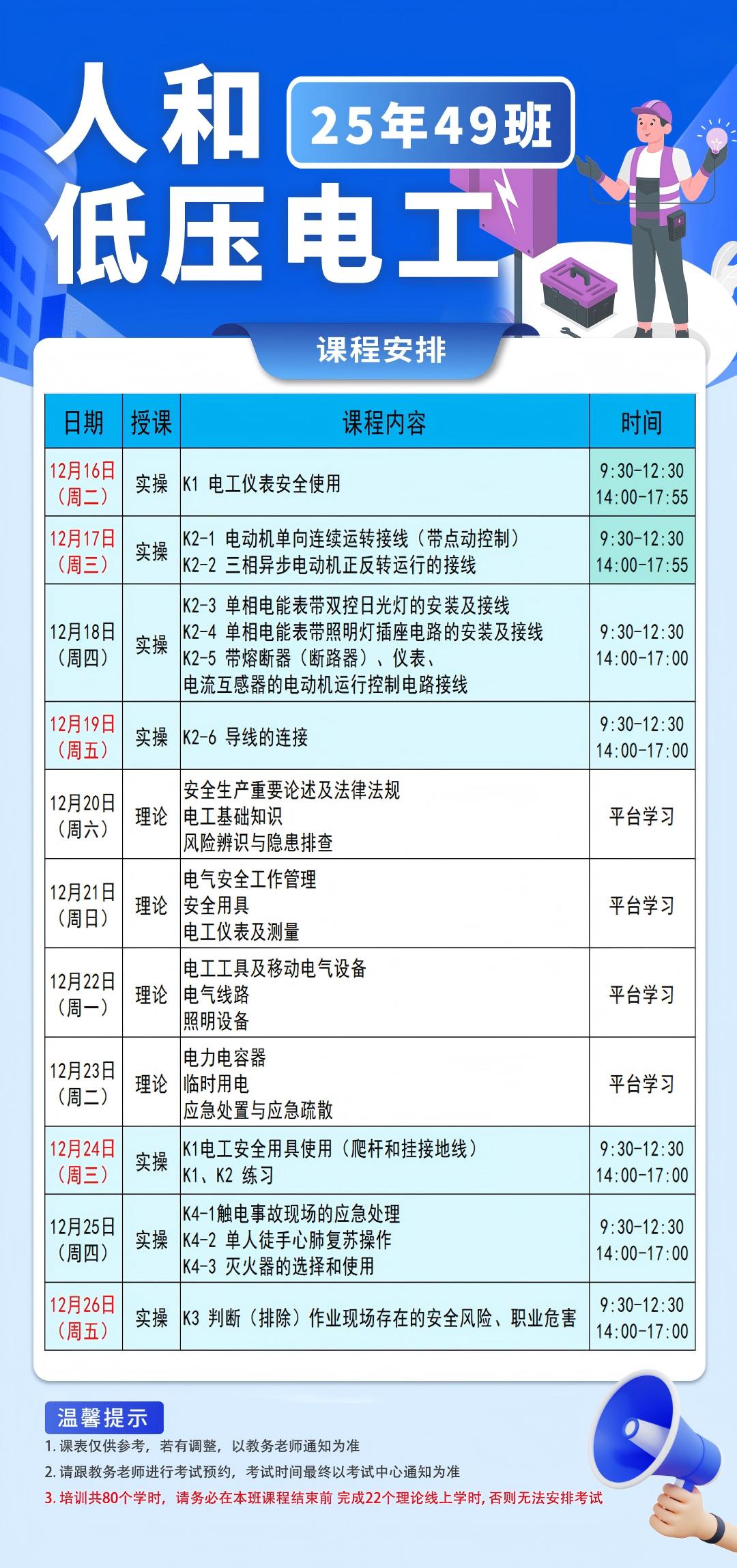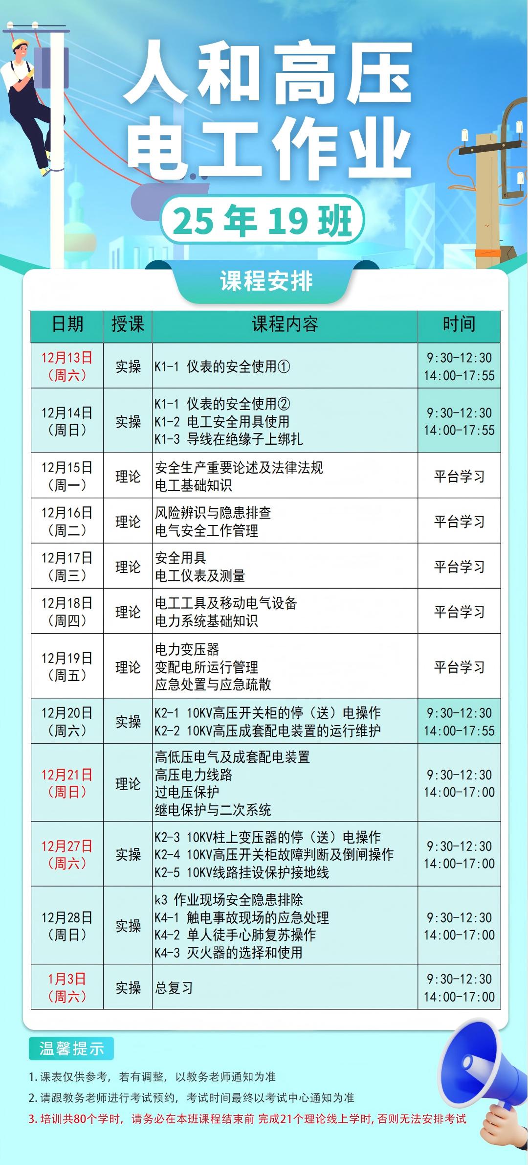25年高压19班-人和(12月课表:最晚截止招生:12月11日中午12点前)
