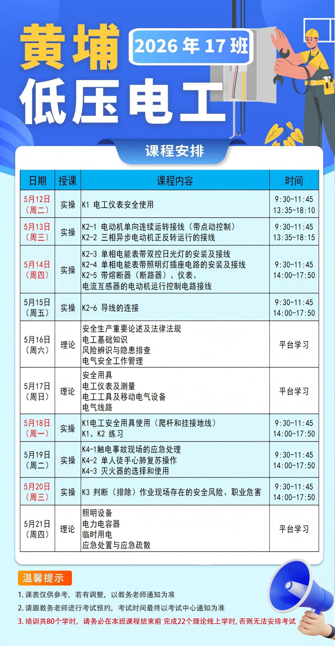 低压17班-黄埔(5月课表:最晚截止招生:5月10日中午12点前)