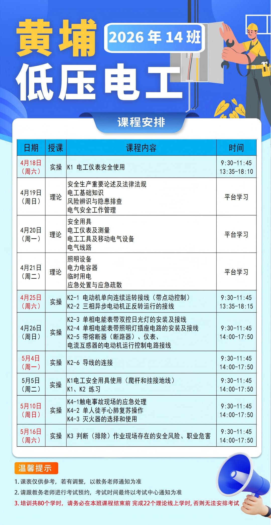 低压14班-黄埔(4月课表:最晚截止招生:4月16日中午12点前)