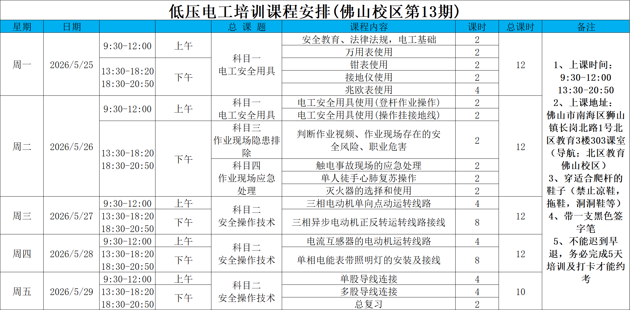 26年低压13期:5月25号开课。(南海狮山)