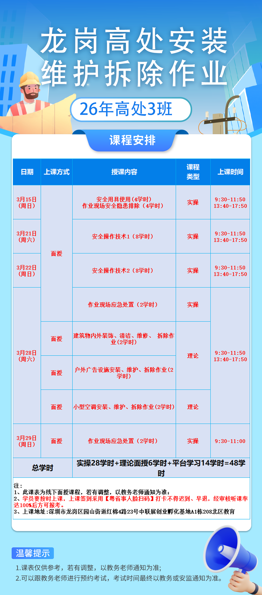 26年高处3班 (3月15日开班) 3月12日截止,剩40名额;