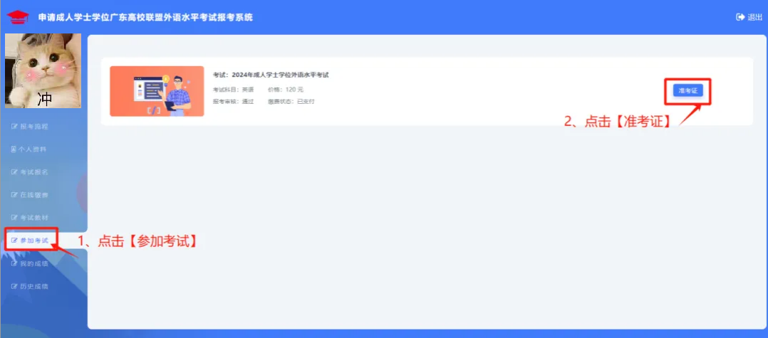 03 点击参加考试后点击【准考证】: