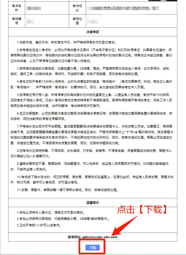 05点击【下载】准考证(须认真核对准考证上的姓名、照片、准考证号、考试地址等信息,确认无误再进行下载/打印。)