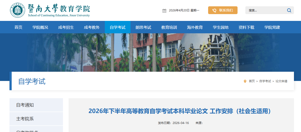 已缴纳论文培训费的考生可于2026年5月20日—5月30日通过暨南大学教育学院雨课堂平台学习《自学考试本科毕业论文写作辅导讲座》视频,考生可从2026年5月20日9:00起绑定账号(操作流程详见附件4)。