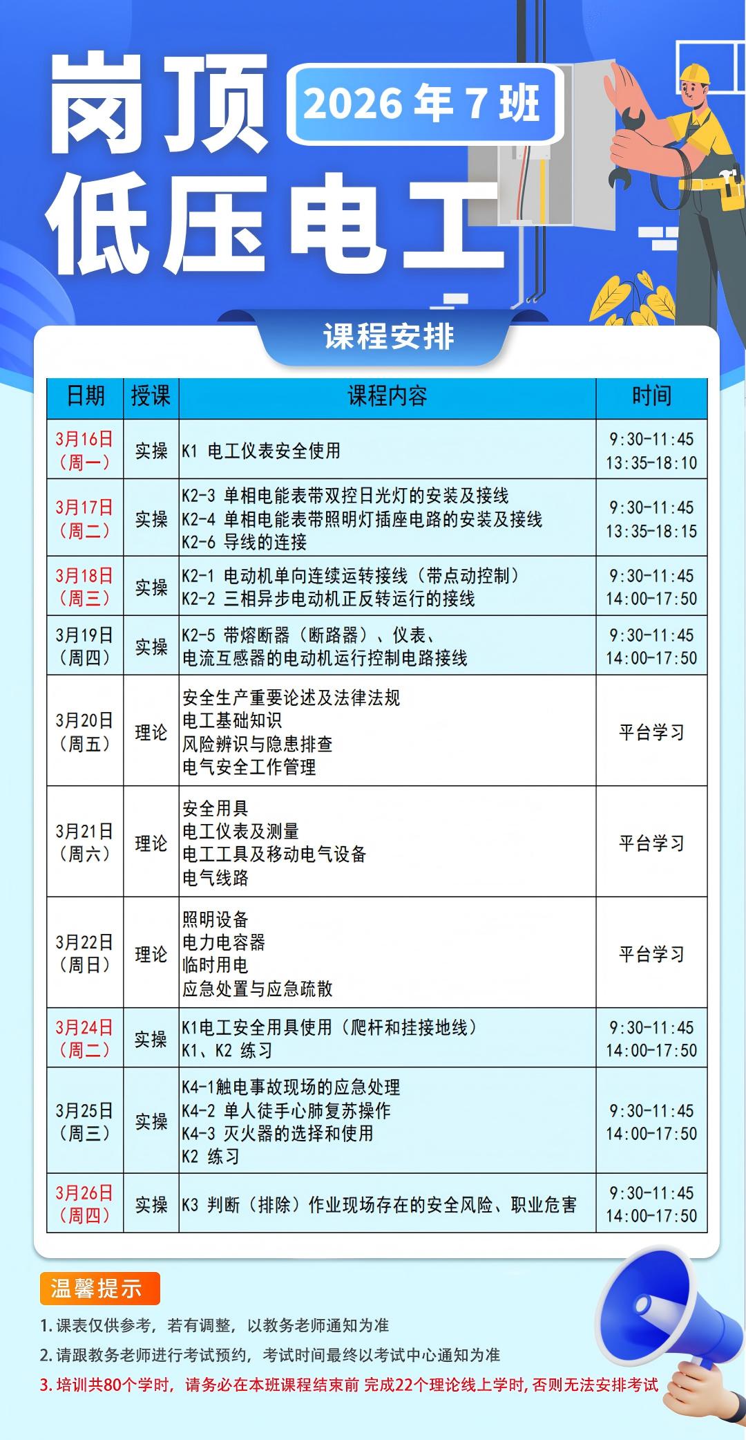广州特种作业课表: