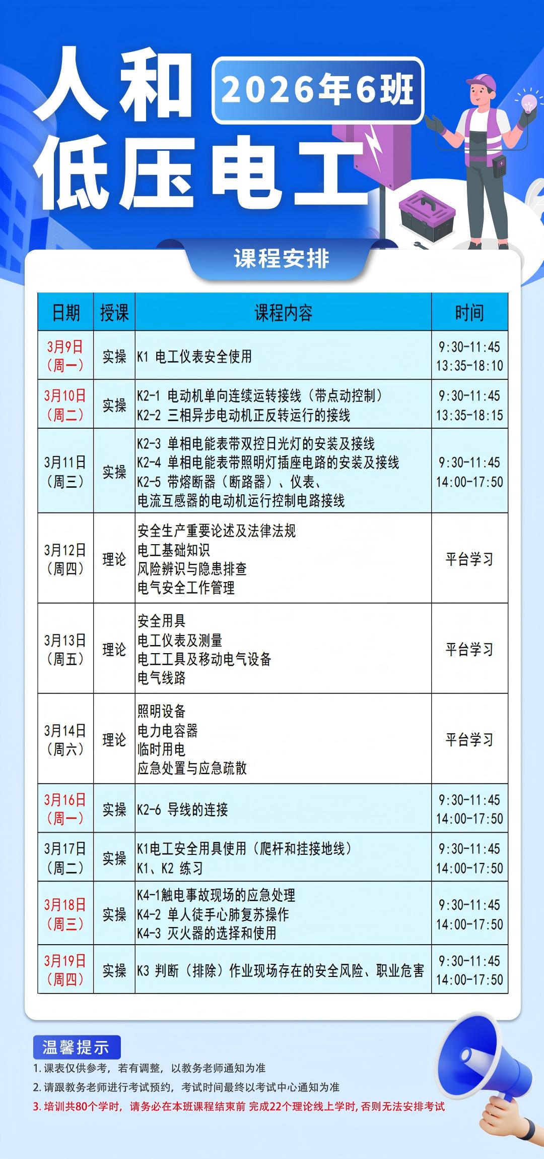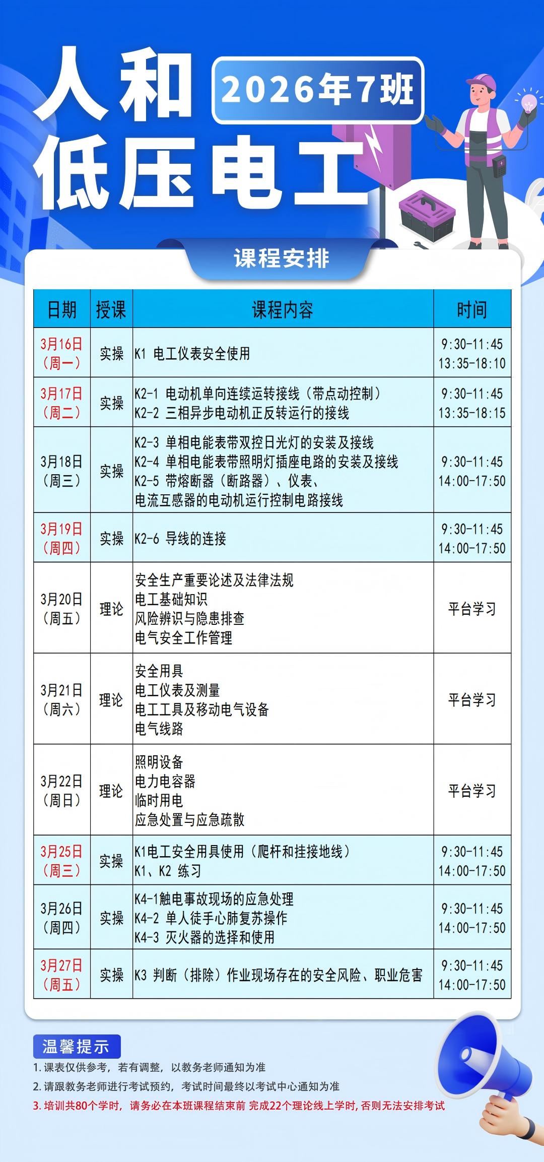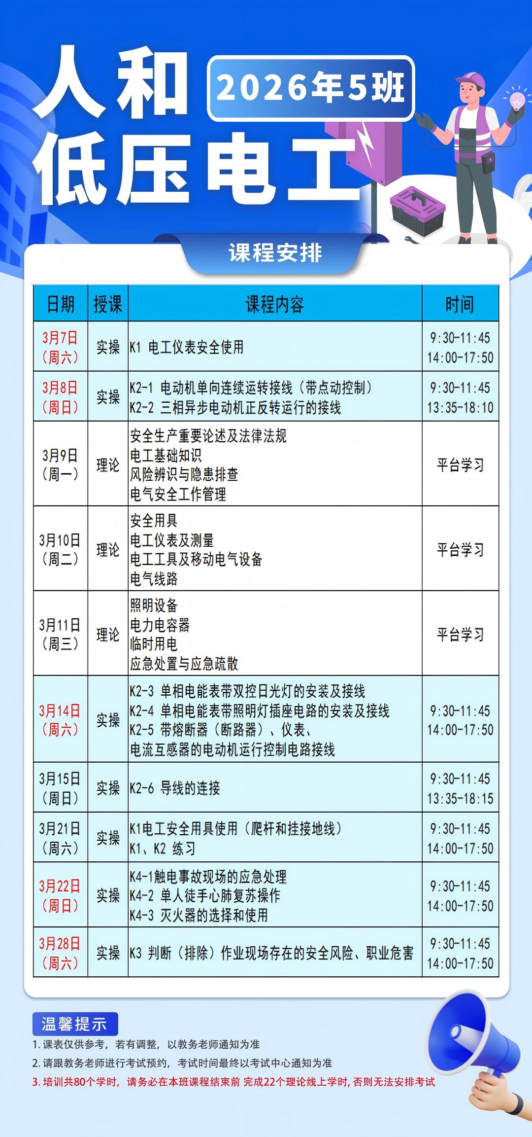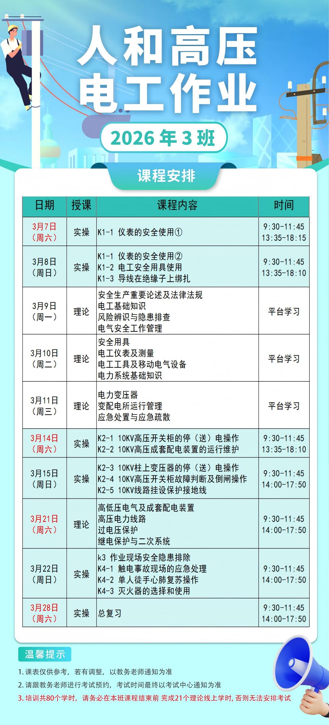 高压3班-人和-调整版(3月课表:最晚截止招生:3月5日中午12点前)