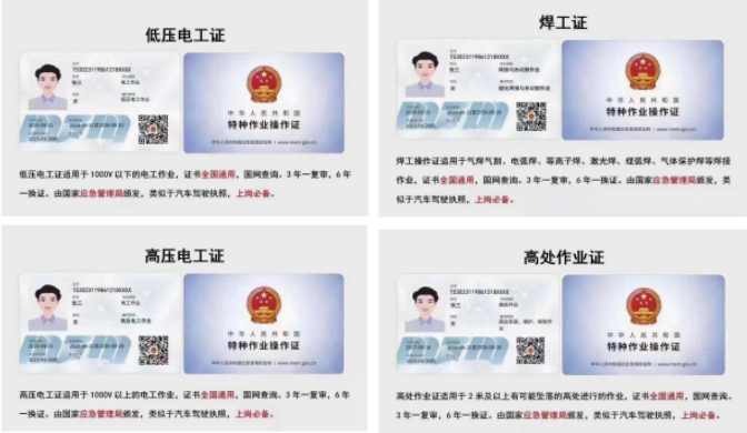 特种作业是指容易发生人员伤亡事故,对操作者本人、他人的生命健康及周围设施的安全可能造成重大危害的作业。直接从事特种作业的人员称为特种作业人员。常见工种如下:电工(低压电工作业/高压电工作业),焊工(融化焊与热切割作业),高空(高处安装、维护、拆除作业/登高架设作业),制冷(制冷与空调设备运行操作作业/制冷与空调设备安装修理作业),安全管理人员以及企业负责人。